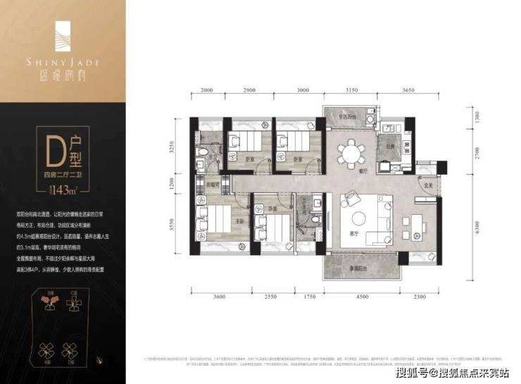 建面约143㎡四➕壹房两厅两卫双阳台