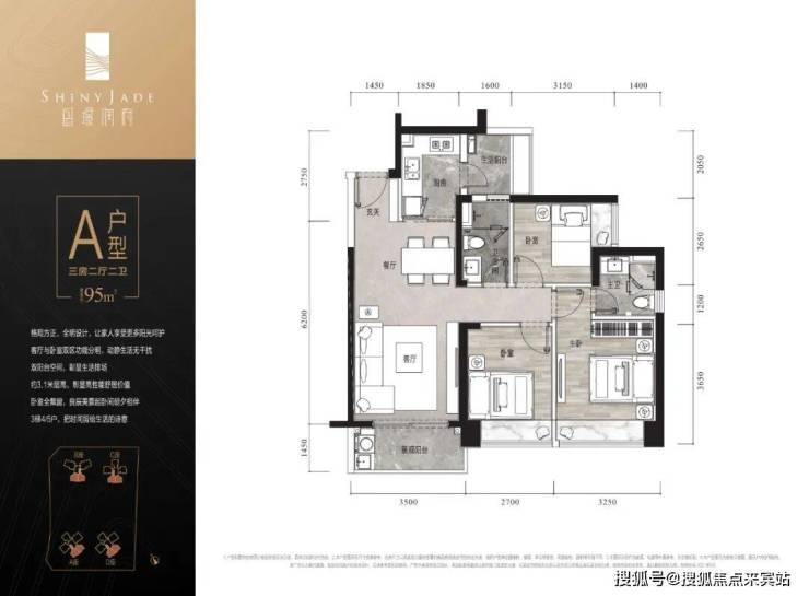 【户型面积】约99㎡3+1房2卫/95㎡3房2卫