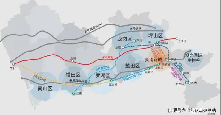 目前大鹏是没有地铁线路的,所以从项目出发无法依靠地铁出行,附近有已规划的地铁23号线(原地铁8号线三期工程),预计2022年开工,距离项目大约1KM。未来可以通过地铁32号线链接8号线,23号线(规划中)链接16至14号线(建设中),快速畅达全城。项目临近3条主干道,分别是金业大道、坪葵路、惠深沿海高速。惠深沿海高速是项目通往深圳各区的一条主要道路;沿惠深沿海高速+北环约1个半小时左右可以到达南区及宝安区;沿惠深沿海高速+罗沙路或深南东路约1个小时左右可以到达罗湖及福田区,沿沿惠深沿海高速+武深高速(或南坪快速)+沈海高速约1个小时左右可以到达龙华区。综合看,项目通往深圳市区的通勤成本比较高,交通网络需要时间。