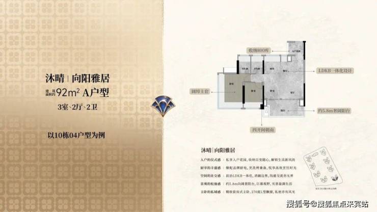 ※【建面约92㎡明星三房】四面宽朝南,房间阔绰进深,联通5.8米阳台