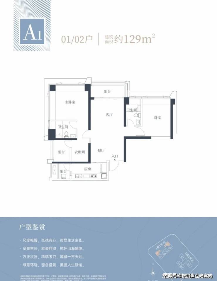 🔹1栋一单元A1、A2户型:面积约为129㎡
