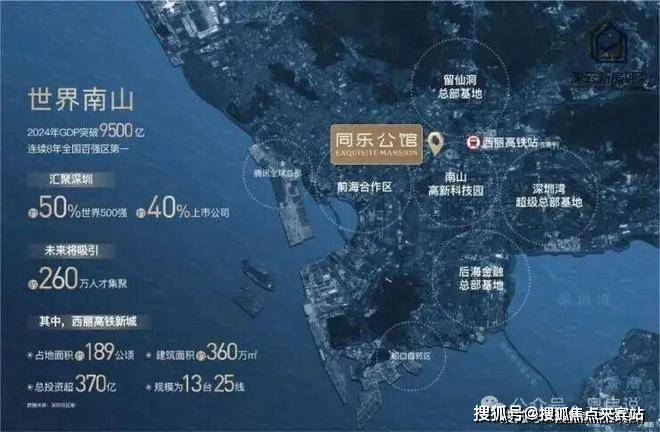 项目雄踞深圳经济主引擎腹地——南山科技园之上,5大全球总部基地核“芯”居住区,西丽高铁新城枢纽发展辐射,共享湾区繁荣。