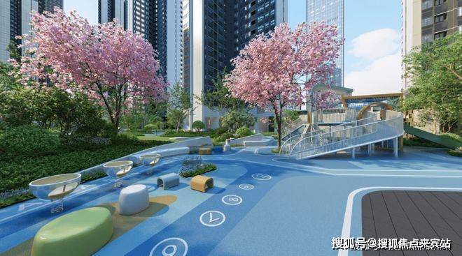 以开放、流动、移步换景的空间设计,将「活力有氧跑道、社交草坪、儿童乐园、多功能主题泛空间」相融,打造一个质感与功能并重的艺术空间,定调未来日常的生活质感。