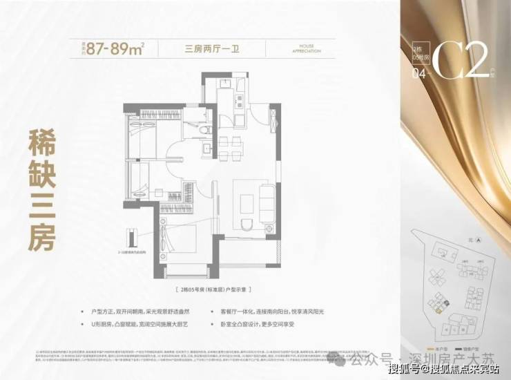 87-89㎡(三房一卫)稀缺精致3房户型,家庭生活一步到位!