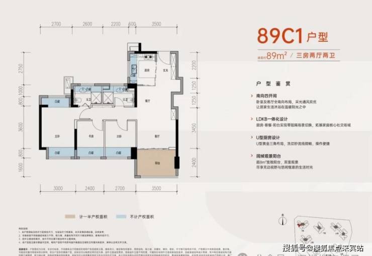 从具体的户型设计来看,居所几乎被飘窗+阳台环绕,据悉赠送率最高可达27%。