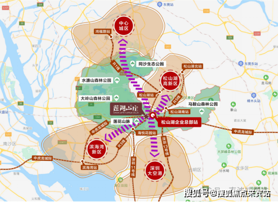 【交通要冲】——三轨交汇之地,松山湖企业总部站TOD核心区域,交通网络四通八达。