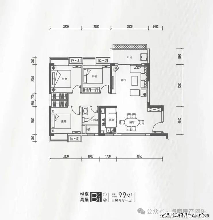 在售户型:建筑面积约99-100㎡三房两厅一卫、约116-119㎡三房两厅两卫