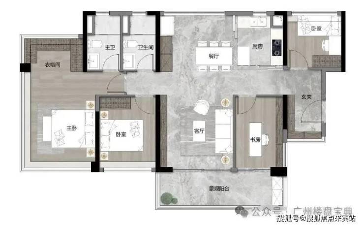 建面118平A户型四房,同样是南北对流设计,和105平户型有点像,但是该户型做到了南北双阳台,会更加完美实用。