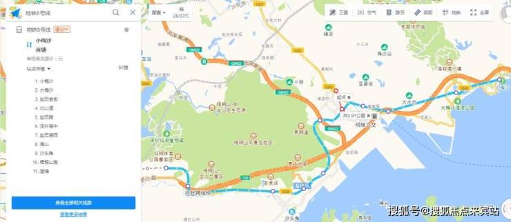 项目所在的地铁是8号线,2020年6月开通,距离项目最近的站为(盐田路站),高德地图测距,盐田路站距离项目接近950米左右。
