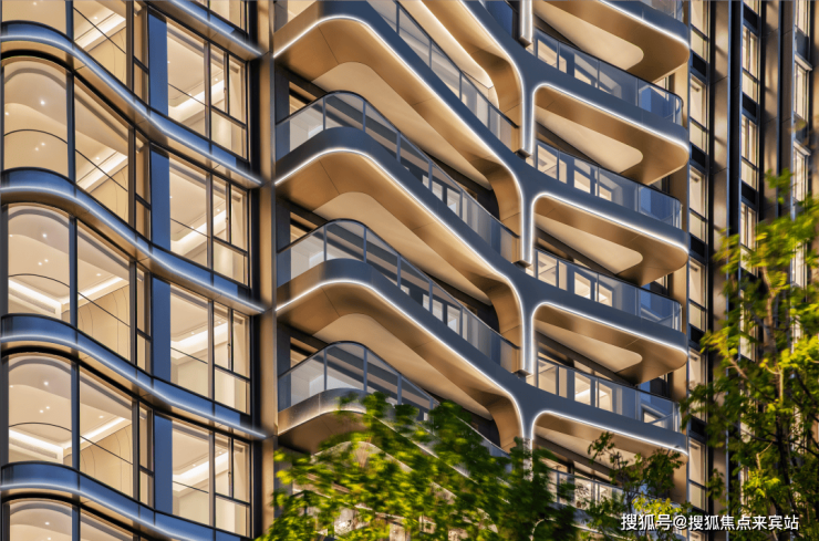 最大270°的巨幅环幕LOW-E玻璃窗,用从曲面顶到曲面幕墙,再到曲面铝板,整栋建筑融合了十几种用材用料、色搭工艺,呈现高级审美。