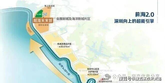 前海8倍扩容,宝安形成“南宝中、北会展”双中心发展格局。从前海1.0(妈湾、前湾、桂湾片区)到前海2.0(会展海洋城),多重战略加持下,成为深圳向上发展的核心引擎。