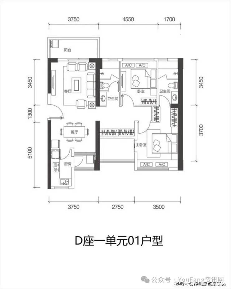 建面约75㎡、94㎡、124㎡三至四房,都心奢阔人居,超配三代人的幸福生活