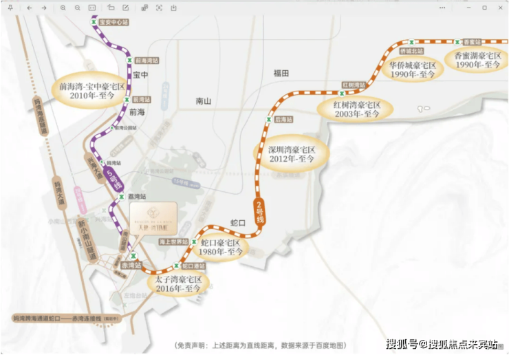 项目距地铁2号线与地铁5号线首发赤湾站约300m(直线距离),从此,坐地铁而不是站地铁,未来新小南山隧道(预计2027年竣工)、望海路升级等重大交通配套持续落地,咫尺间连通蛇口、前海。