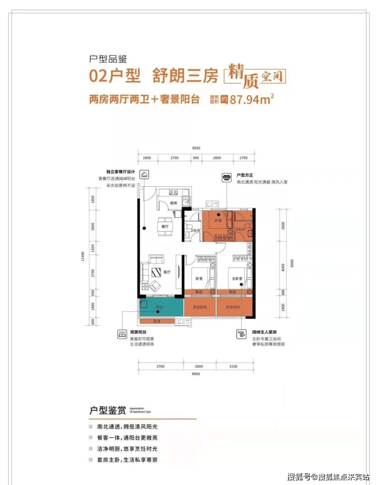 · 超闊面寬戶型,南北朝向,室室通透,自帶全通一體化寬景陽臺;