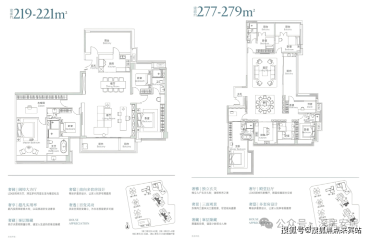 105-108㎡双龙抱珠3房2卫,122-124㎡通透4房2卫(可改3卫),123-129㎡竖厅4房2卫(可改3卫),140-144㎡竖厅4房2卫(可改3卫),144-145㎡竖厅5房2卫(可改3卫),188-190㎡4房3卫,219-221㎡和227-279㎡大平层户型。