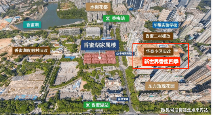 华泰旧改项目分为两个地块开发,西南角的03-02-05地块,规划为公寓,即新世界香蜜国际公寓。