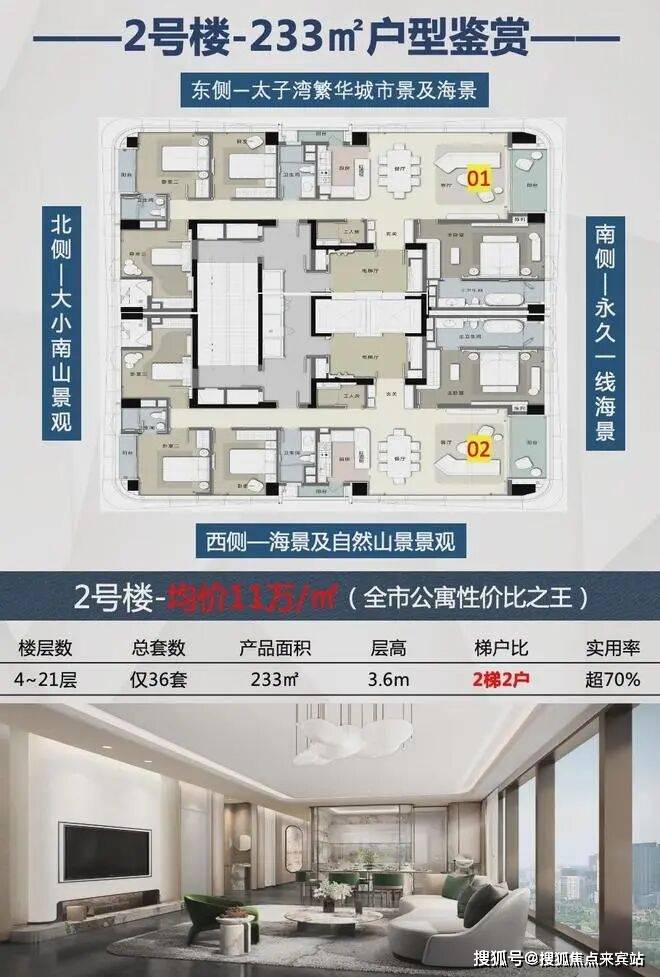 深圳太子湾鲸域是位于深圳市南山区的高端公寓项目。项目主打233-309㎡的4-5房公寓。项目紧邻地铁2号线和12号线,交通便利,周边商业配套丰富,包括K11、D-Park等购物中心,且享有太子湾综合体的多元业态配套。项目主打一线海景,高楼层可享无遮挡海景,是集高端居住、商业、文化艺术于一体的综合性项目。