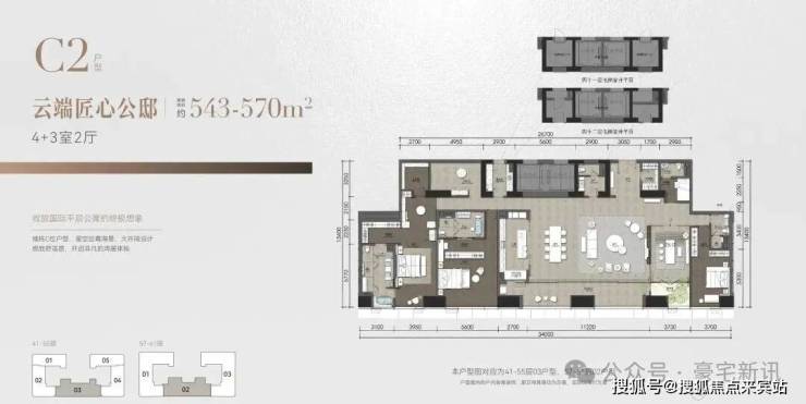 ◎建面约543~570㎡ 4+3室2厅,云端匠心公邸