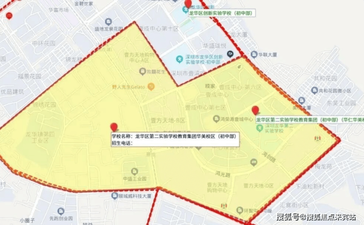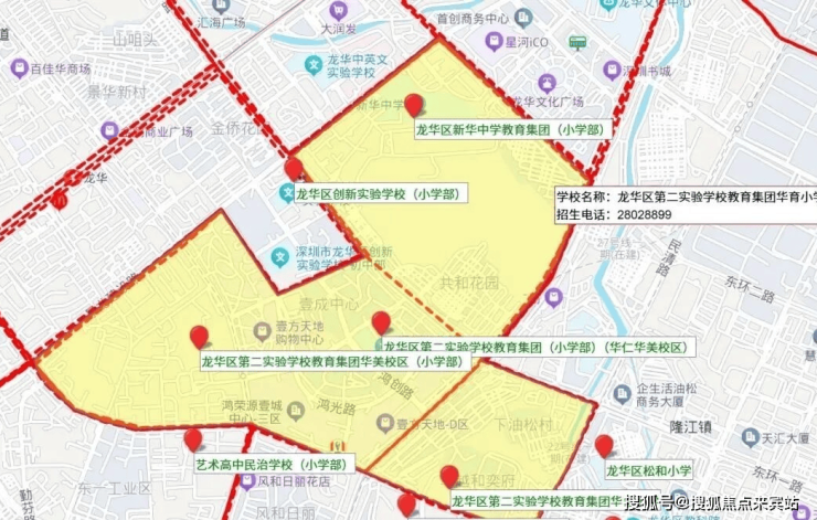 依据2024年龙华区教育局的学区划分方案,小学学区涵盖龙华第二实验学校华美校区、龙华区新华中学教育集团小学部;初中学区为龙华第二实验华美校区。