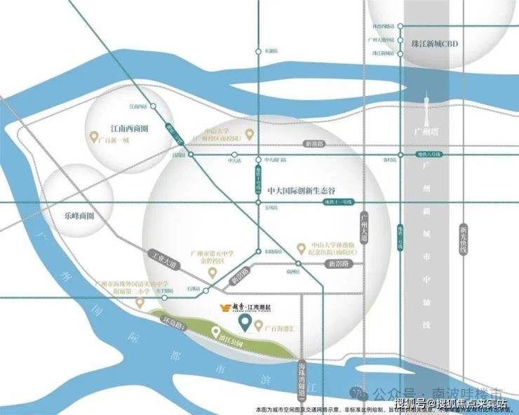 地处广州城市新轴线、珠江后航道和中大国际创新谷三轴交汇处,立足城市未来生态宜居、经济活跃、文化繁荣的滨水区域。