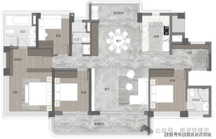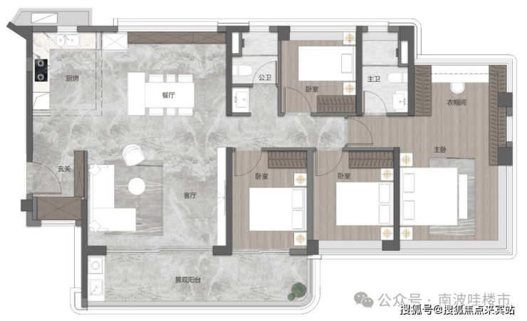 通透四开间朝南|一体化瞰江宽厅|270°全景女王主卧套房