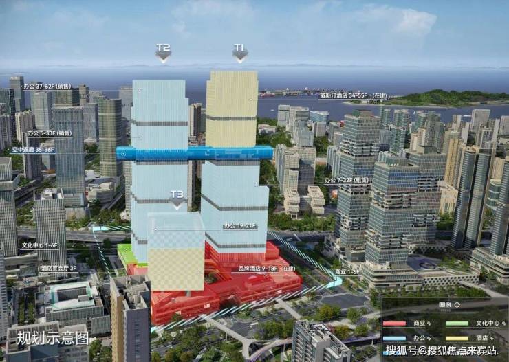 🌐建筑层数:T1栋-地上56层、T2栋-地上53层、T3栋-地上21层、综合体地下4层