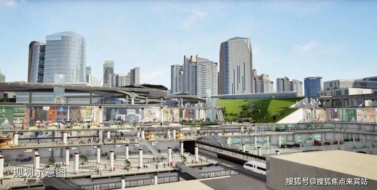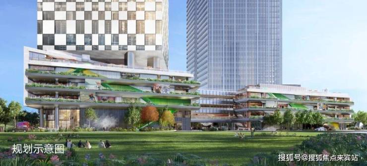 🔘塔楼裙楼:塔楼裙楼为集中商业、酒店宴会厅、文化中心、公交枢纽站,地下二层与地铁5号线妈湾站连接,业态丰富,功能复合,互通互融。