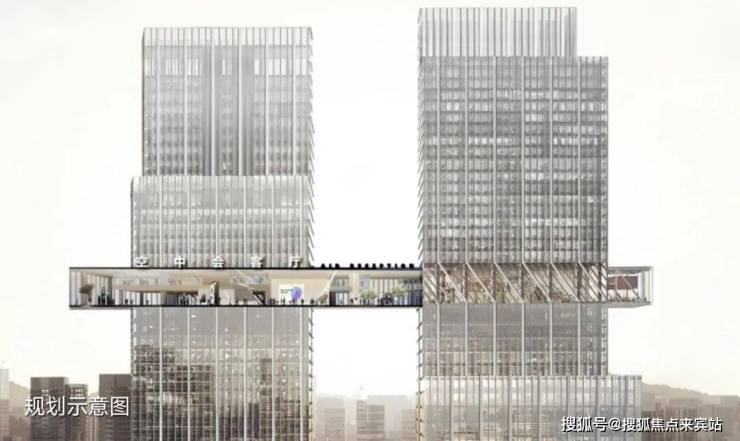 🔘空中会客厅:T1与T2栋塔楼通过“空中连廊”连接,两层通高,离地面高度约157米,是前海罕见的高空连廊空间,规划打造云端会客厅,未来前海观景打卡新目的地;
