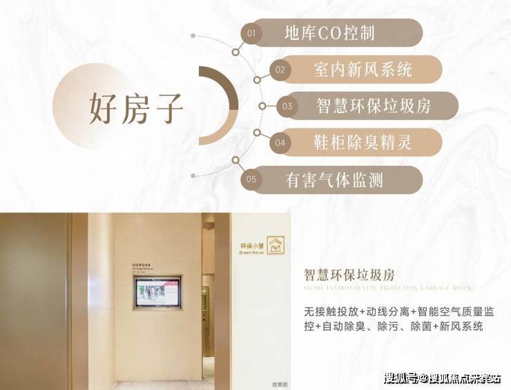 新风系统、智慧垃圾房等配置,从户内到小区,全方位净化监测+清新除菌+绿色投放,无忧呼吸。
