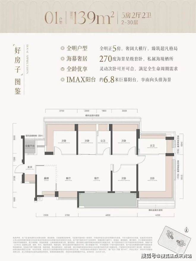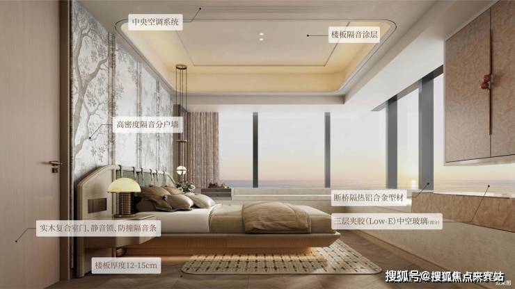 享受约100米舒适高度,270°瞰海飘窗把南向头排海景变成家的日常;