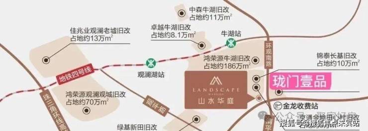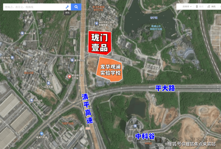 位于龙华区君子布街道环观南路与何地路交汇处,地处龙华观澜与龙岗平湖的交界处。从区域位置看,处于观澜相对偏的区域。虽然东侧紧邻观澜山水田园这一旅游休闲好去处,但周边的城市界面存在不足,北侧大片城中村影响整体档次。
