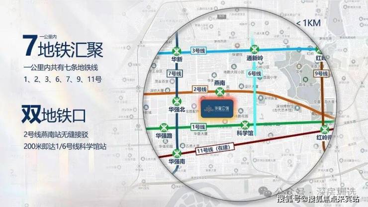 三地铁交汇地铁物业,0距离燕南地铁口(2号线燕南站),约400米到1号线/6号线科学馆站,片区800米内汇集1、2、3、6、7、9、11号七条地铁线,50多个地铁站口。