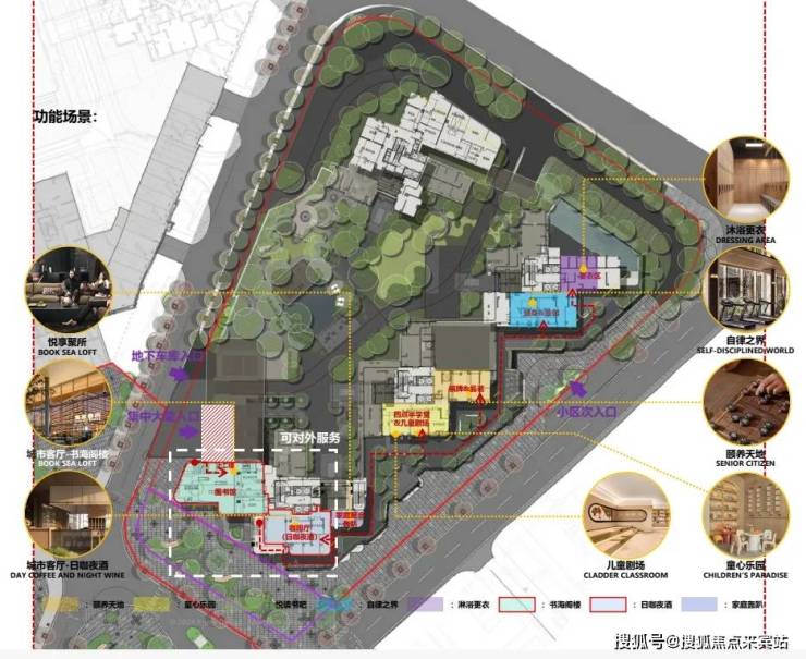 小区架空层还打造成不同主题不同年龄段的活动空间,包括四点半学堂&儿童剧场、健身瑜伽区、老人棋牌和品茗区等。