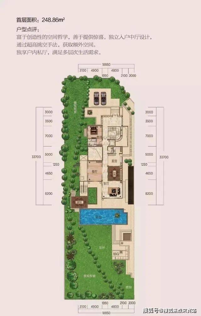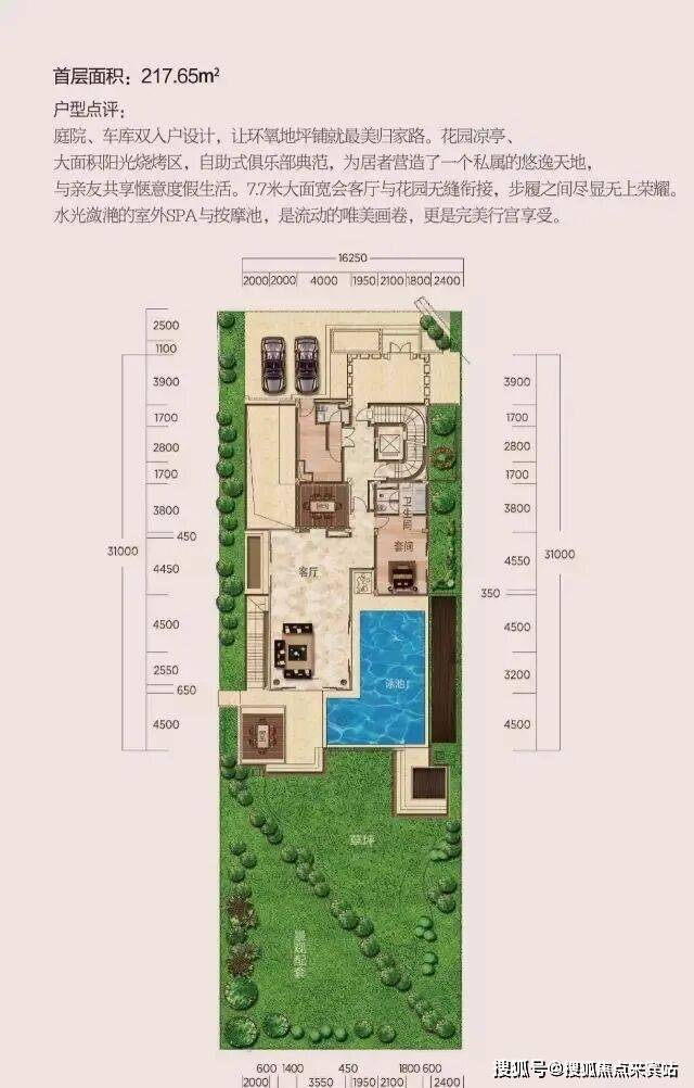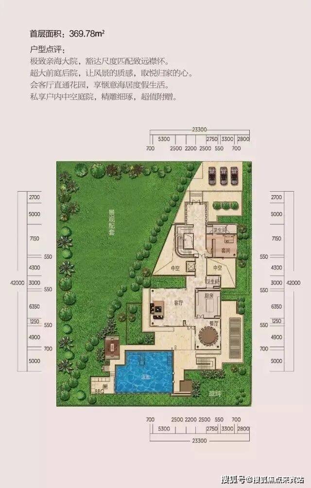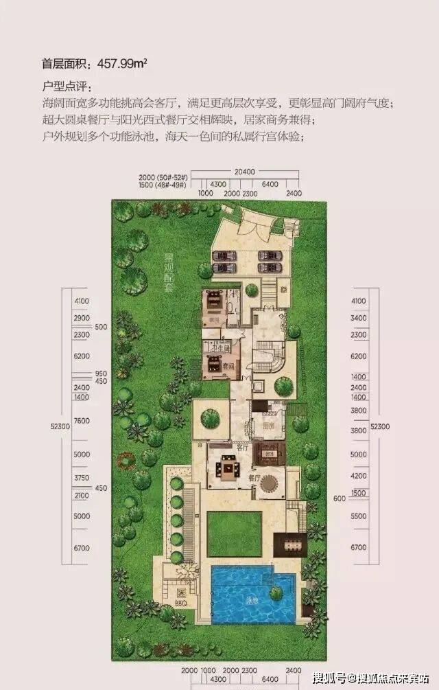 并且配备50平米左右泳池。