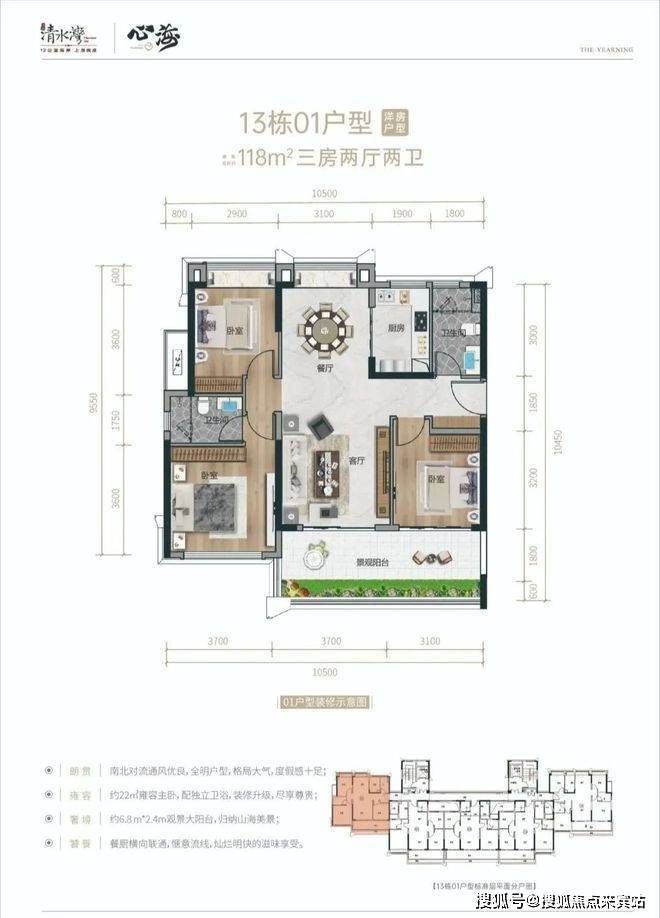 12#06号位、13#01号位118㎡户型,通透三房两卫