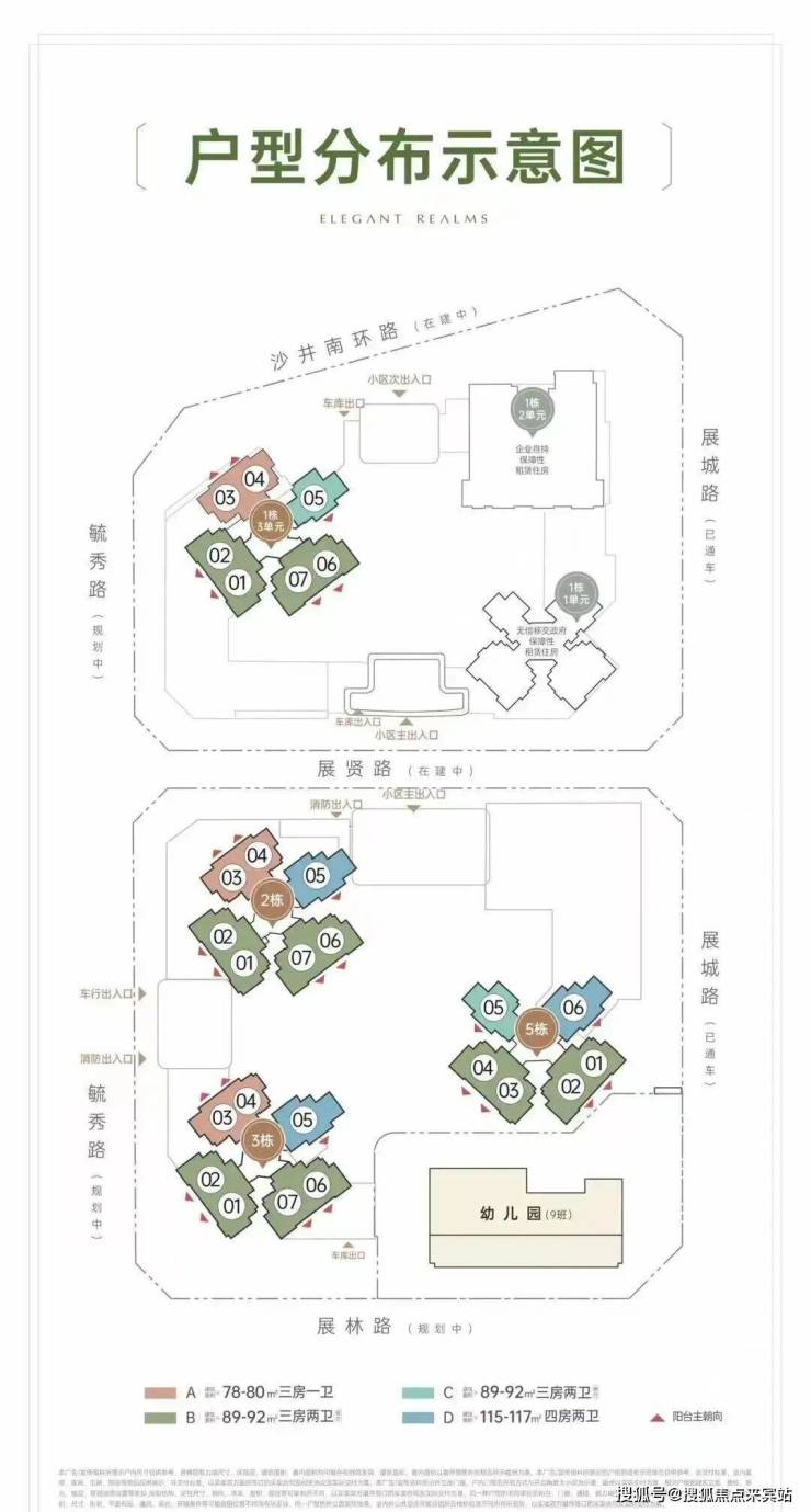 招商会展湾雍境名邸,由招商集团打造,总占地面积约2.52万㎡,总建筑面积约16.95万㎡,计容建筑面积约11.76万㎡,容积率4.3,分2个地块开发,共由6栋总高26-31层高的住宅组成,其中1栋1单元公租房26F,1栋2单元自持租赁30F,1栋3单元/2栋住宅31F,3栋/5栋住宅32F,4栋是1所9班制幼儿园。