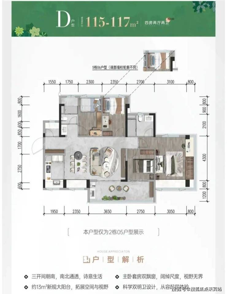 对比一期的产品,二期名邸是新规后的户型,飘窗做到了80公分,得房率最高做到了105%;且外立面升级了铝板和玻璃幕墙,在交付标准上升级了品牌厨卫和智能家居。
