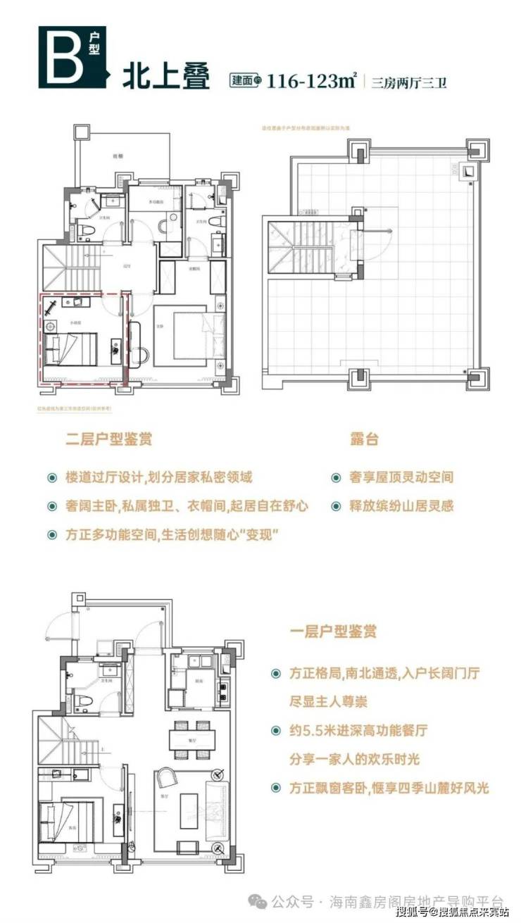 北上叠:建筑面积约116-123㎡三房两厅三卫