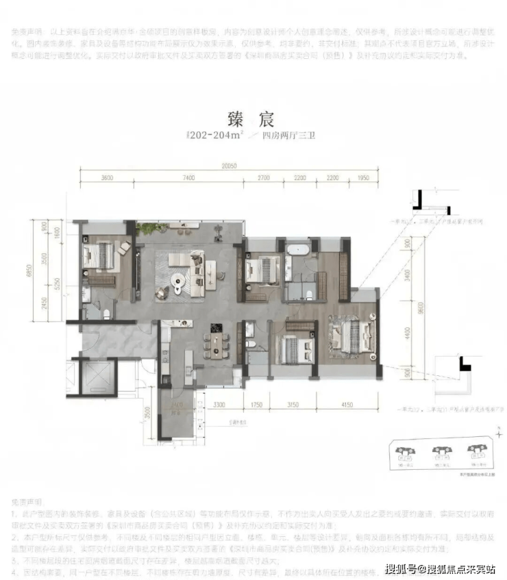 204㎡的4房2厅3卫,设计的是横厅南北通透格局,独立专梯入户,客餐厅7.4米开间,LDKB一体化,超大客厅+双套房设计,分别做到了主卧33㎡/次卧16.1㎡/次卧13.54㎡/次卧11.61㎡(包含墙体飘窗),客餐厅出7.4米长的观景大阳台,直面科学公园,L型厨房带1个生活阳台,卫生间干湿分离,得房率78.2%(不含赠送)东北朝向。