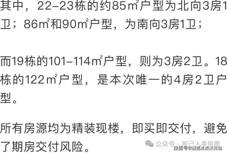 金泽豪庭推出的特价房源主要位于四期的18栋、19栋、22栋和23栋,产品建面包含约85-121㎡的三至四房。