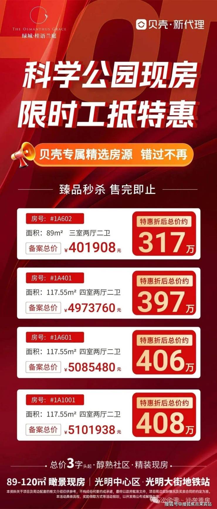 .据最新内部消息:光明中心绿城·桂语兰庭放出了少量10套内部房源,89㎡总价319万起,楼层可选。准现楼!仅有少量房源,先到先得!并且可享受大额媒体返现优惠,具体可以私信了解安排!错过不再有!现房即买即住!