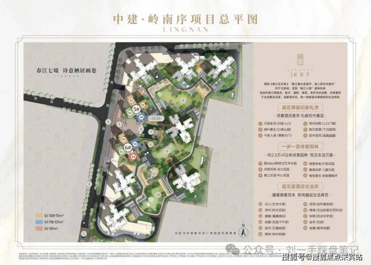 二期“中建岭南序”,共有9栋住宅,使用率高达150%,0飘窗,首推5、6号楼,其中5号楼46层、6号楼32层,2梯4户,产品户型约108-141㎡
