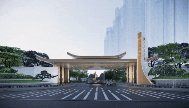 以千年海丝之路为魂,风帆为引,铸就高约10.8米、延展约126米的城市门楼封面,百米林荫礼宾长廊,让归家成为尊崇仪式的开端