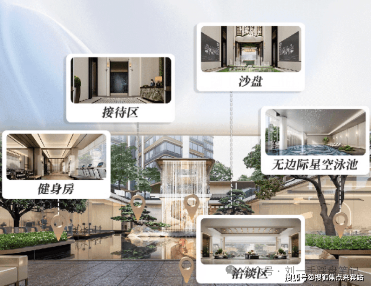 穿过公园,来到近百米超五星级酒店式精奢大门,拼花铝板吊顶、云英色石英砖等雅奢材质,全球甄选普拉达绿奢石辉映,珍寻百万级罗汉松迎宾,“丝路瀚海”艺术雕塑凌波而立,让每一寸抵达皆成礼序