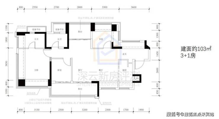 【中建·鹏宸云筑】即将加推西区7栋,本栋47层,标准层高约3.1米,3梯6户,共262套,面积约89㎡3+1房两卫,103-121㎡四房两卫。