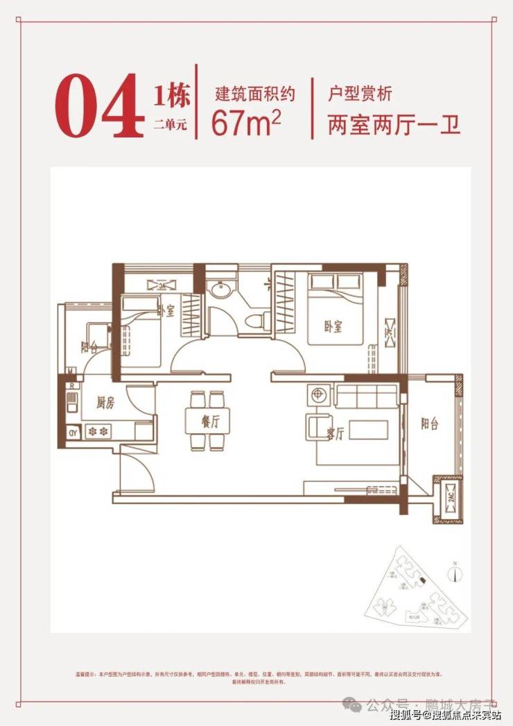 💎约67㎡两房:东南朝向,片区内唯一在售2房。