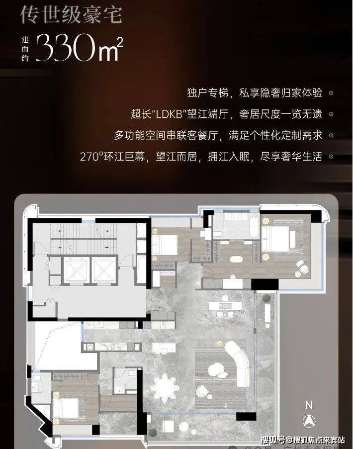 【占地面积】:约2.37万㎡【建筑面积】:约4.96万㎡【绿化率】:35%【总楼栋】:1栋【总户数】:96户【梯户比】:2梯2户、2梯1户【项目户型】:248-253-330㎡天际大平层