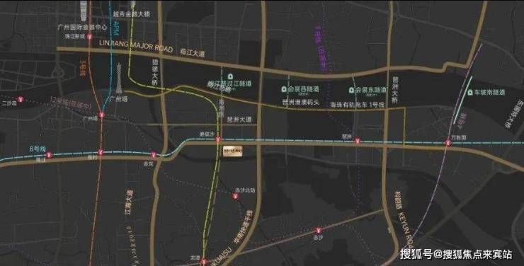 项目比邻地铁8、18号线,8号线可换乘3号线、4号线、11号线(在建中)、12号线(在建中)等。搭乘18号线可实现一站达珠江新城(磨碟沙站·冼村站),南接新光快速、右邻华南快速,速达城市核心区,琶洲港澳客运码头,便捷直达香港国际机场。