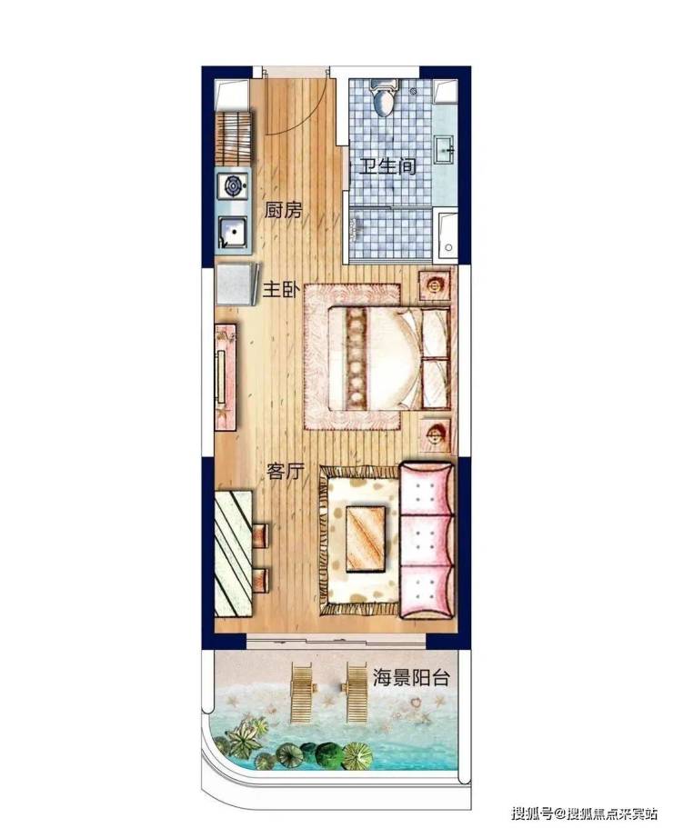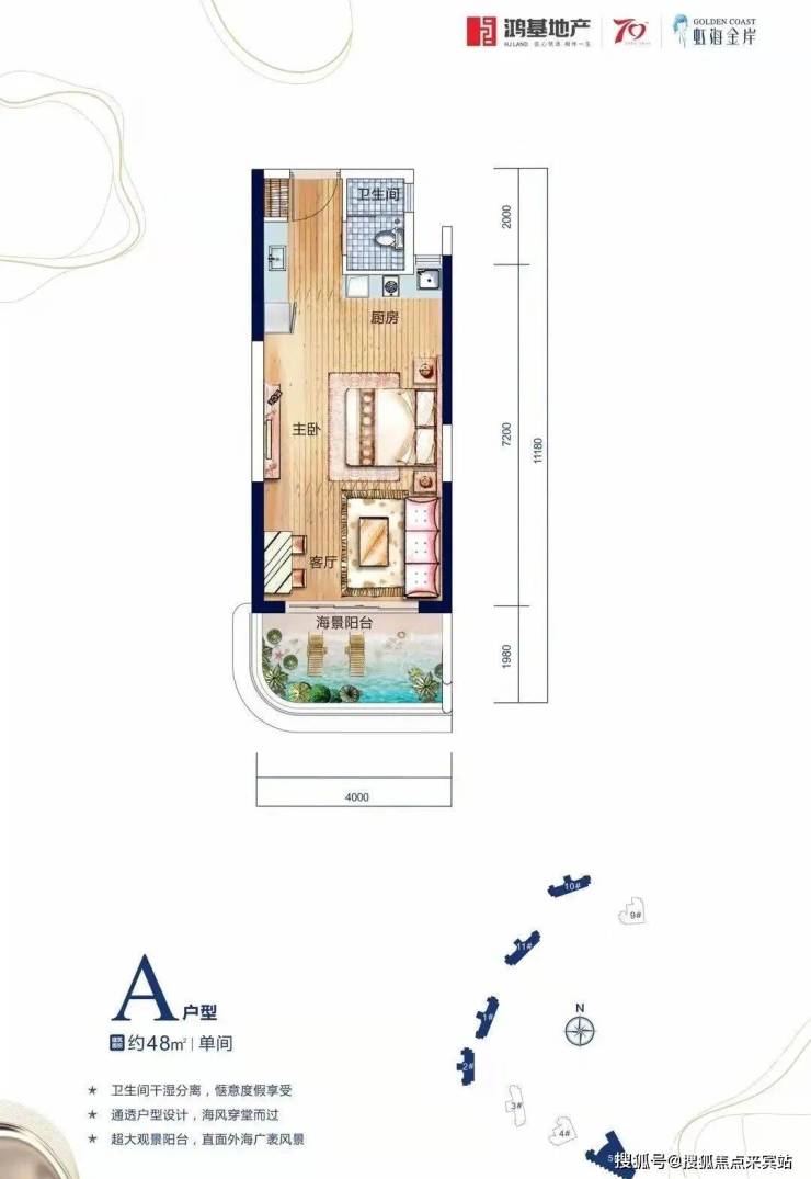 【A1户型】52㎡ 单间含开放式亲海露台,户型方正,舒适与实用率皆得,放大度假体验。