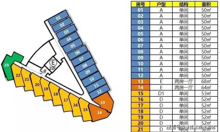 ② 5栋住宅户型:48-53㎡单房、86㎡两房一厅